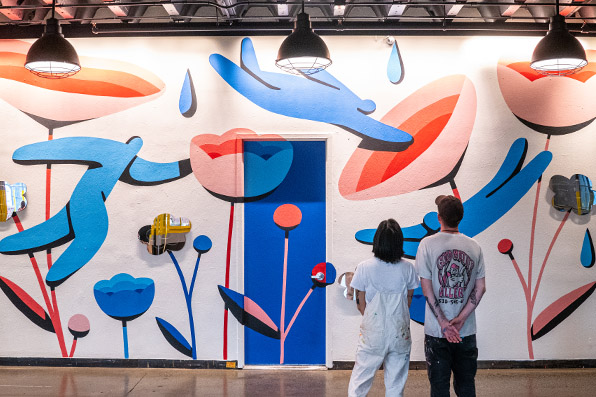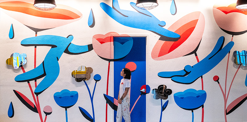 Jocelyn Tsaih‘s piece, After The Rain, is the latest addition to The Collision Project‘s collection, and the first piece to launch the Asian American + Pacific Islander artist series. The Taiwan-born, Shanghai-raised, and Oakland, California-based artist uses amorphous figures to provoke introspection and curiosity. Tsaih’s mediums range from digital, paint, and murals, with a style that offers an almost 3D effect that surrounds you when viewing her work as a life-size mural. Read our interview below to learn more about Jocelyn Tsaih.