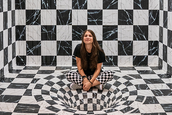The term “trompe l’oeil” is a painting or design intended to create the illusion of a 3D object. Much of what I do involves making people believe something is real, when in fact it is not. For this installation, we wanted to create an immersive experience using trompe l’oeil, allowing Industry City visitors inside the artwork!