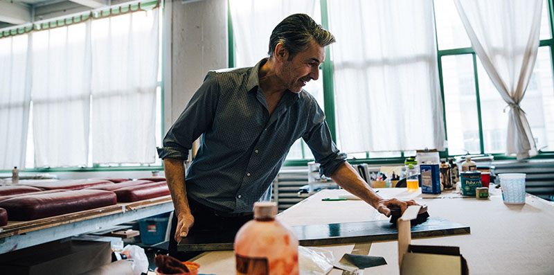 Over the past 25 years, Pourny’s business has expanded immensely. Shortly after starting his own restoration company, he opened a studio in DUMBO to meet demand from clients all over New York City. Fans caught on fast, including Martha Stewart, who featured Pourny in a “How To” segment on her eponymous talk show. Shortly after, he began to sell a furniture tonic that was sold all over the U.S. at local stores. It turned new people on to his work, and exposed them to the pleasures of furniture care. In 2016, Pourny wrote a book, The Furniture Bible, with a foreword by Stewart. In 2019, he moved his studio to Industry City, Brooklyn, where he began his retail expansion.