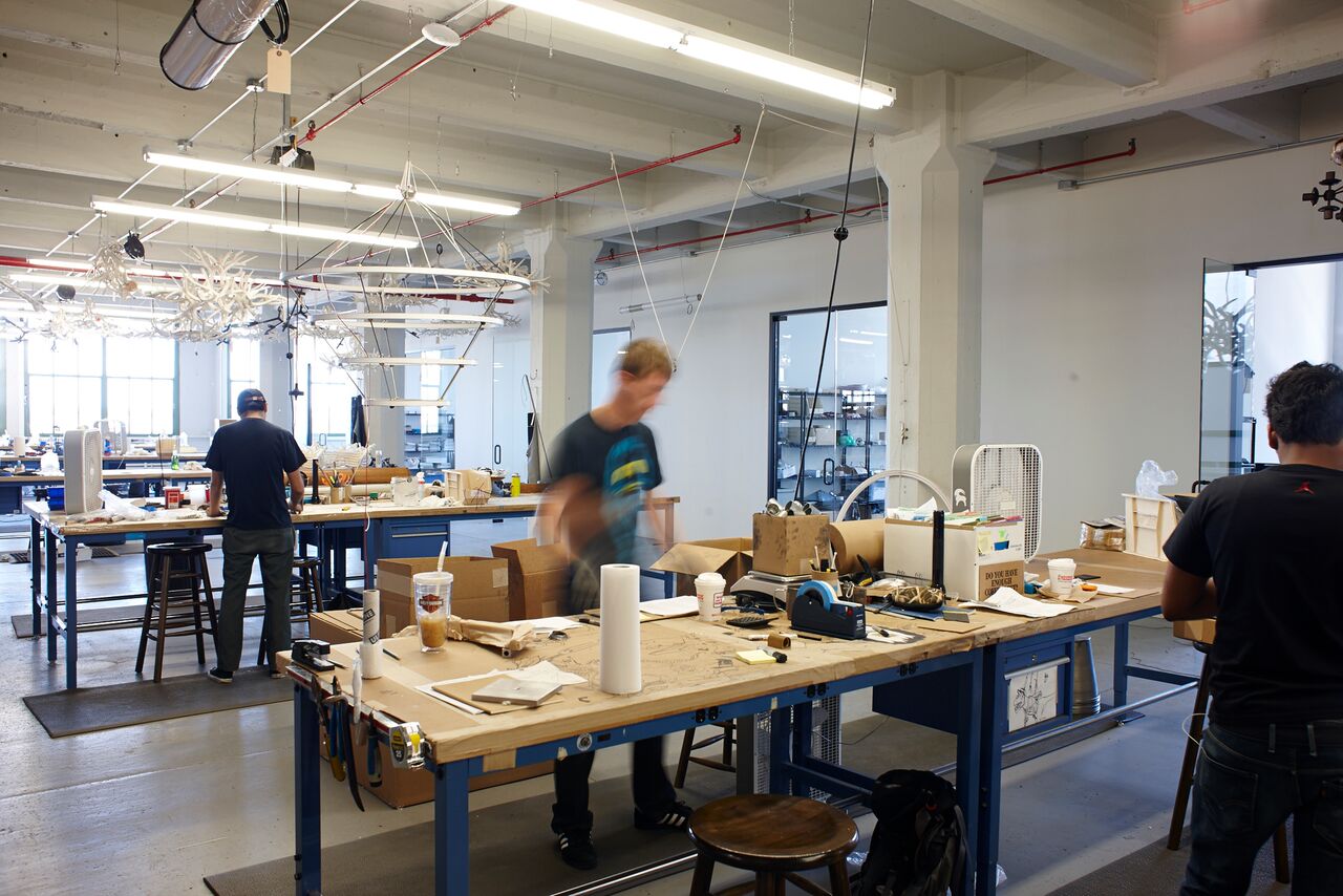 Ever wonder why suddenly every hip restaurant of a certain type had an antler chandelier? Well, if so, you have Industry City’s Jason Miller to thank. While the antler chandelier may be his most iconic creation, his line Roll & Hill and his design studio Jason Miller Studio encompasses much, much more. Miller moved to industry City 7 years ago, and thanks to steady growth, he recently moved into an even bigger space to support and maximize the workflow of more than 70 employees. Today, Roll & Hill does everything from design to manufacturing (by hand, on demand) for a large catalogue of Miller’s creations.