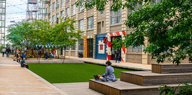 At Industry City, a company can have its retail store, offices, warehouse/storage unit and manufacturing and fulfillment centers all in the same place, then enjoy the complex’s more than 30 food and beverage vendors, plus entertainment options such as live music. Businesses also benefit from access to a robust talent pool, complementary workforce training and hiring services and convenient placement near the Brooklyn-Queens Expressway and the 36th Street subway station.