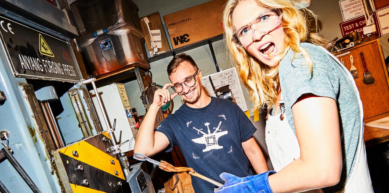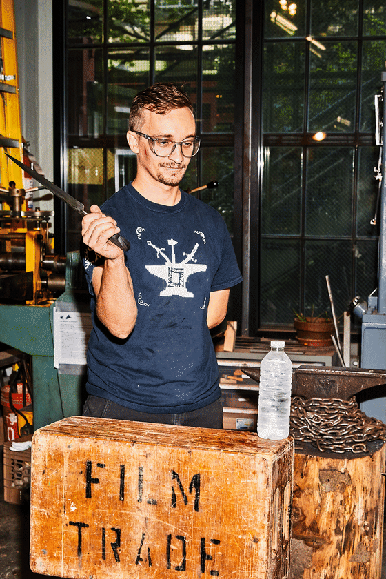“Don’t touch anything you don’t recognize in here because it might be hot, electrified, covered in acid, or all three,” Theo Nazz tells me as he welcomes me into his forge and blacksmithing school in Brooklyn’s Industry City.